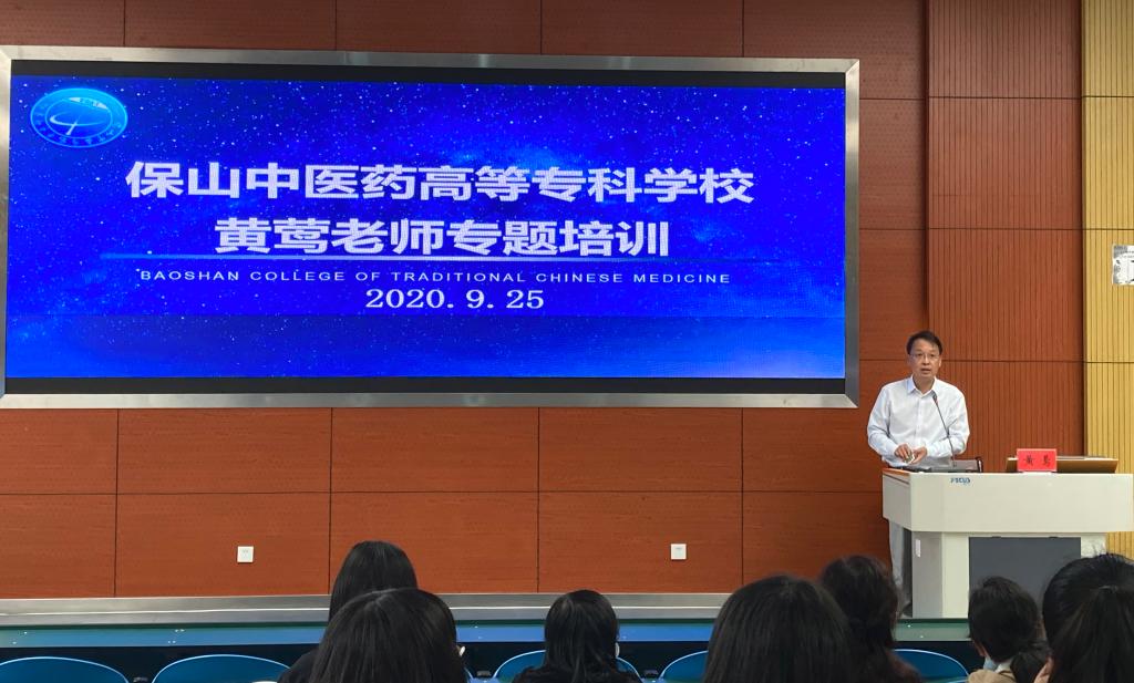 9月25日,保山中医专举行2020年教学竞赛暨第四届实践教学基地教学竞赛赛前专题培训,邀请昆明医科大学黄莺老师对学校教师进行专题培训。